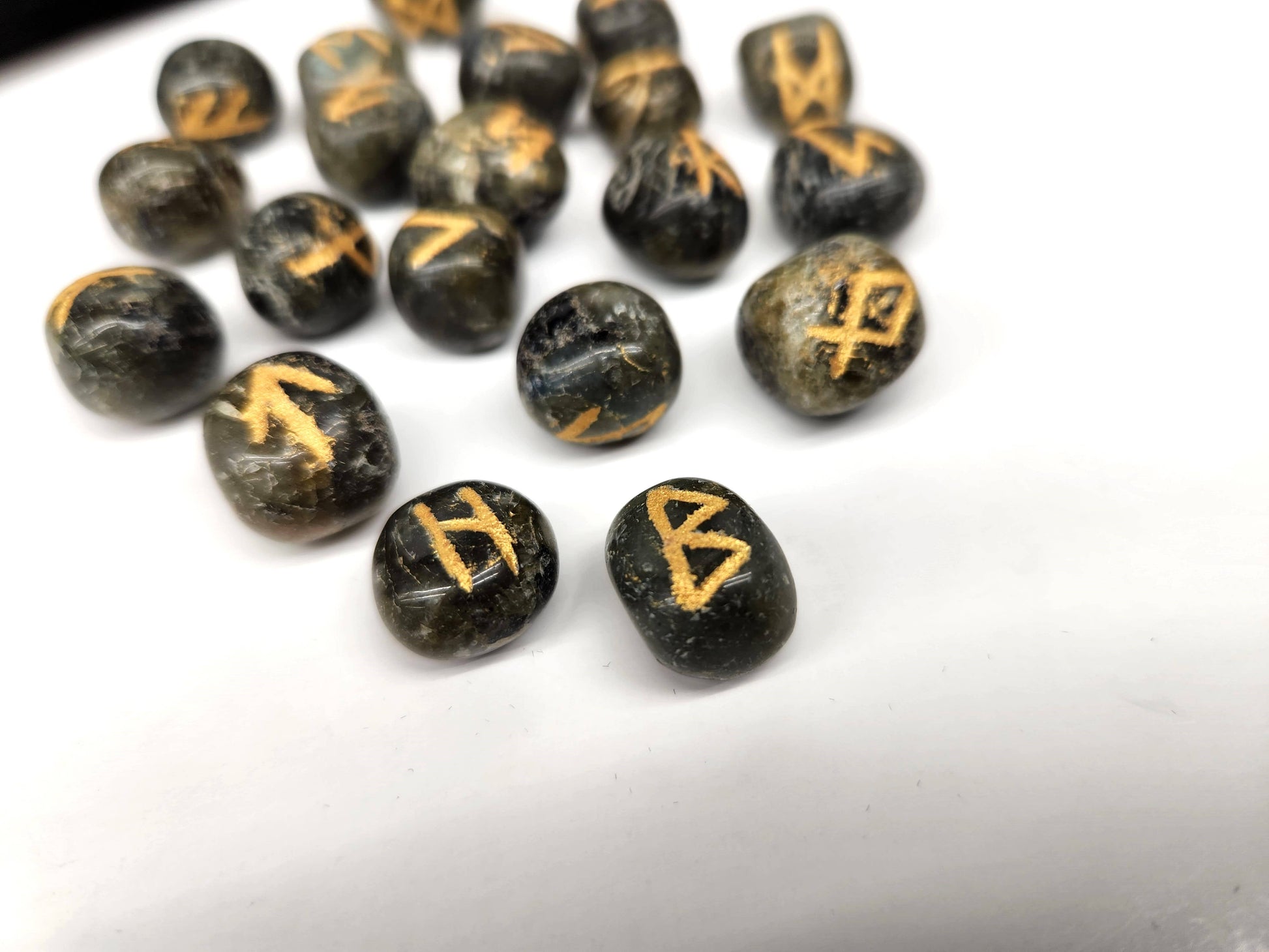 Runes are ideas expressed symbolically through scripts that predate our Latin alphabet by hundreds of years. Beautiful Labradorite Semi-Precious Gemstone Rune Sets have 24 stones with engraved symbols and 1 stone without any engraved symbols. Each Rune set comes with a velvet pouch to keep them safe when not in use. *All natural gemstones are used to make these Rune Sets. There are slight variations due to the natural character of the stones.